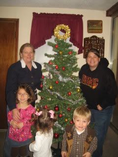 We put up our tree just like we do the day after thanksgiving every year. Then this last Thursday we went to visit the kids Great Grandma and Grandpa Apple and my Mom, Amanda and Caylea, Carolina and Elijah put up Grandma and Grandpa's tree they had so much fun. Then Friday we went to my mom's for the day and the kids got to decorate her tree also. I have decided that if anyone else solicits my children to decorate their tree I am charging them. Just kidding really they had so much fun.