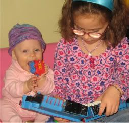 Caylea reading a book to Sarah